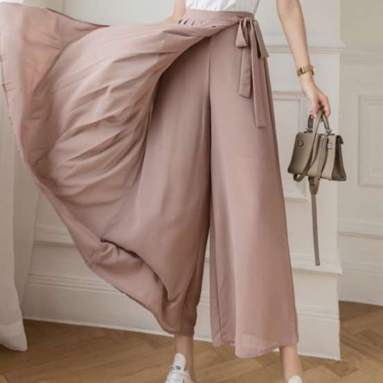 優雅なドレープ感が魅力のプリーツキュロットスカート。ウエストのリボンベルトにより、体型にぴったりフィット。歩きやすさを保ちながらも、上品さを感じさせるデザインが大人の女性にぴったり。カジュアルからフォーマルまで幅広いシーンで活躍する一着。着るだけでスタイルが格上げされるアイテムです。